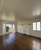 Large and charming living room, highlighted by original historical fireplace and windows. It offers a private front yard. Parking included. Pet friendly.