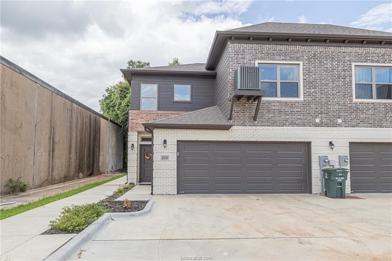 Experience modern living in the heart of Downtown Bryan in this 2022 end-unit townhome offering style, functionality, and unbeatable walkability. The open-concept floor plan seamlessly connects the living and kitchen areas, creating an inviting space ideal for everyday living or entertaining. Vinyl plank floors, sleek modern hardware, and warm accents add character throughout. Downstairs master suite is the perfect separation and seclusion. Both generously sized upstairs bedrooms include private ensuite bathrooms and large walk-in closets for comfort and privacy. Enjoy your own attached 2-car garage and a prime location just three blocks from a local park, four blocks from vibrant Downtown Bryan, and approximately five miles to Kyle Field and Texas A&M University. Restaurants, coffee shops, boutiques, and the farmers market are just moments away.