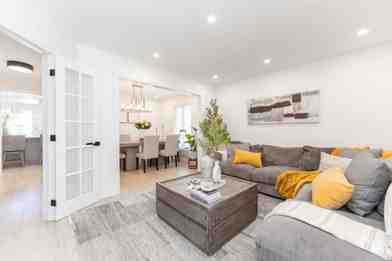 This modern and comfy home features stylish wooden floors throughout. It offers a fully equipped kitchen, comfortable bedrooms with 1 king-size bed and 3 queen-size beds, an open-concept living area, high-speed Wi-Fi, 2 full kitchens, and 2 sets of washers and dryers. The living room is the perfect location for the family to relax, watch a movie, and enjoy each other's company with 2 comfortable sofas and two 55-inch flat-screen TVs, one on the main floor and one in the basement. Both kitchen areas feature numerous cooking appliances and spacious countertops with a beautiful island in the middle, including a microwave, stove, oven, refrigerator/freezer, dishwasher, toaster, sink with hot & cold water, trays, glasses, silverware, and pots & pans. There are also 3 dining tables that fit the entire family and friends.