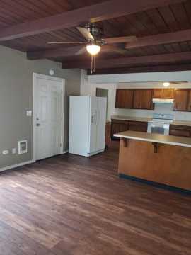 Nice 4 bedroom one bath 2 story house. 2 bedroom upstairs and 2 down stairs. Living room has fire place. Vinyl flooring except bedrooms upstairs. Kitchen furnished with refrigerator/freezer, stove/oven/hood and dishwasher. All windows are furnished with mini blinds. There is washer/dryer hook -up. Ceiling fans in living room and bedrooms. Yard has enclosed back yard. Yard maintenance is tenants responsibility. Tenant pay all utilities which includes trash, electric, natural gas and 60% of water & sewer. This is a non smoking home. Small pet may be approved with additional deposits.