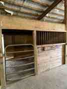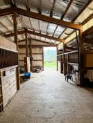The barn is located on 5 acres in Oregon City and includes four stalls, a tack room, feeding area, and an outdoor riding arena.