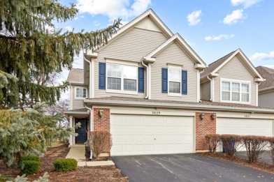 Stunning end-unit townhome available for rent offering 3 bedrooms, 2.5 baths with high ceilings and an open sun-filled layout. The main level features wood laminate floors and a spacious eat-in kitchen with island seating, 42" wood cabinetry, glass tile backsplash, and newer stainless steel appliances including a brand-new GE microwave. A dramatic two-story living room with gas-start fireplace creates a warm and inviting space, complemented by a modern half bath. Upstairs includes a vaulted-ceiling primary suite with two closets and a spa-like bath with double sinks, separate shower, and jetted tub, along with two generously sized bedrooms, a versatile loft ideal for a home office or second living area, and convenient second-floor laundry. Recent updates include a new roof and gutters, new siding in progress, and furnace and A/C replaced in 2020. Enjoy outdoor living on the concrete patio with mature landscaping, an attached 2-car garage, award-winning Naperville 204 schools, walking distance to the library, close to shopping, dining, and entertainment at Naperville Crossings, and easy access to Route 59. Available from Jan 10, 2026