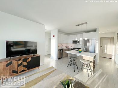 Lincoln Park Luxury Build! The apartment features wide-plank flooring; floor-to-ceiling windows; solar shades; soft-close cabinetry with under-cabinet lighting; quartz countertops and tile backsplashes; stainless steel appliances; built-in kitchen islands; walk-in closets with built-in organization systems; walk-in showers; double bath vanities; and in-unit washers and dryers.