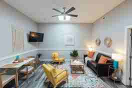Welcome to your home-away-from-home in Johnson City! This newly renovated 1-bedroom, 1-bath apartment is located in the heart of the revitalized downtown area. Cozy up on the comfortable couch and feel right at home.