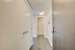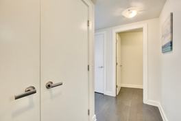 This suite impresses with floor-to-ceiling windows and flawlessly engineered hardwood floors. The contemporary kitchen features top-of-the-line stainless steel appliances and beautifully crafted cabinetry. A breakfast bar is included for quick meals, and the formal dining room seats four at its sleek wooden table. The living room has been tastefully furnished with a high-quality leather couch and lounge chair. The master bedroom includes a comfortable double bed and a large closet. An in-suite washer and dryer are included.