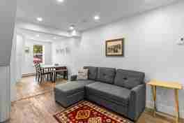 This apartment features a spacious living area with a TV and sofa bed, and a fully equipped kitchen. The bathroom has a clawfoot tub with shower. Enjoy the convenience of cable TV, fast Wi-Fi, and an in-unit washer and dryer.