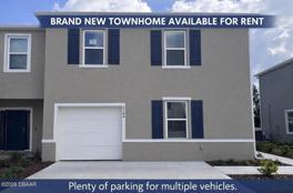 Coastal living, just minutes from New Smyrna's beautiful white sandy beaches. This brand new, never-lived-in townhouse is ready for immediate occupancy and is located in the River's Edge community in Edgewater. Offering almost 1900 sq ft this spacious home has 3 bedrooms, 2.5 bathrooms, and a one-car garage, plus a double driveway that easily accommodates two additional vehicles. The first floor is an open floor plan featuring tile flooring throughout and a bright living area that flows seamlessly into the dining space and kitchen. The eat-in-kitchen includes granite countertops, stainless steel appliances, abundant cabinet space, pantry, and a breakfast bar ideal for everyday living and entertaining. A convenient half bath is also located downstairs. Upstairs you'll find a generous primary suite with a large walk-in closet, double vanity, and walk-in shower, along with two additional guest bedrooms and a full bathroom, as well as a full laundry room with a brand new washer and dryer. The monthly rent includes lawn care, beautiful community pool, landscape maintenance, irrigation, and AT&T fiber high-speed internet, providing easy low-maintenance living. Perfectly located near I-95 and SR-442 with quick access to New Smyrna Beach, boating and fishing, shopping, dining, and Orlando attractions including Cape Canaveral, NASA, and Disney.