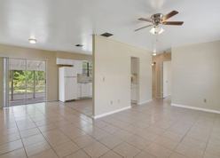 Welcome home to this recently updated two bedroom, two bathroom plus an office home with tile floors throughout. The main living space opens to a bright and airy kitchen with white cabinets and appliances. There is a sliding glass door that leads to the screened patio overlooking the back yard. Two spacious bedrooms share a full bathroom. The garage space has been converted to a flexible living space and offers another full bathroom.