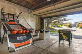 This home is designed with families in mind and sits on the largest, most secluded backyard in South Bodega Harbor. Relax in the hot tub, roast marshmallows at the fire pit, swing under the coastal sky, or enjoy outdoor dining at the large table with BBQ grilling nearby. The fully stocked kitchen makes cooking easy, and the dining table fits up to 8 people for family meals. Enjoy movie nights on the big projector screen with surround sound. The garage doubles as a family game room with arcade hockey, foosball, and arcade basketball. Beach toys are available for ocean adventures. Please note that the oven is out of commission.