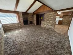 This spacious 3 bedroom, 1.5 bathroom home offers 1,319 sq ft of living space with a unique Southwest charm. The home features beautiful exposed brick throughout, vaulted ceilings with wood beams, and a cozy brick fireplace in the large living room that adds warmth and character. The kitchen offers plenty of cabinet and counter space, tile flooring, and a functional layout that opens to the dining and living areas. Large windows throughout the home provide natural light while maintaining privacy. Each bedroom offers comfortable space and closet storage, and with three full bathrooms, the layout provides flexibility for guests or shared living.