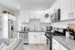 Beautifully updated single-level apartment in a gated fourplex. Featuring wood and tile flooring throughout, high ceilings, and a bright open layout. The contemporary kitchen offers brand-new cabinets, stone countertops, and stainless steel appliances; perfect for cooking and entertaining.