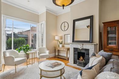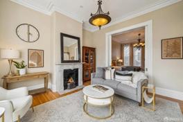 Traditional SF Victorian with high ceilings, great moldings, large rooms, updated kitchen with high-end appliances. Wet bar in sunroom with television and great back yard with BBQ grill, seating and fire pit.