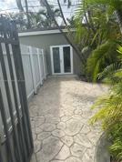 Charming private efficiency with separate gated entrance, front porch, and rear patio. Spacious open studio layout featuring tile floors, mini-split A/C, kitchenette with full refrigerator and microwave, and a full bathroom with tub. Freshly painted and renovated, ready for immediate move-in. Enjoy a quiet and private setting surrounded by tropical landscaping. Utilities included and large private storage room available. Conveniently located near shopping, transportation, and major roadways.