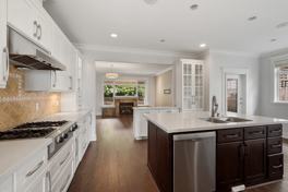The main level welcomes you with soaring vaulted ceilings, rich architectural details, and a bright, open-concept layout. The gourmet kitchen features granite countertops, stainless steel appliances, ample cabinetry, and convenient access to the outdoor BBQ area, perfect for both everyday living and hosting gatherings. The kitchen flows seamlessly into the generous family room and dining areas, creating a warm and inviting atmosphere.
