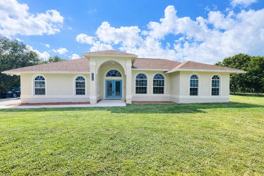 Spacious rental on 1.31 acres in The Acreage offering privacy, comfort, and thoughtful upgrades. Fresh interior paint and new carpet enhance the interior, while the fourth bedroom features a private ensuite ideal for guests, in-laws, or a home office. The fully fenced property includes an electric entry gate, with an additional fenced area behind the home ideal for children or small pets. Additional features include an RV pad with dual amp hookups and a propane generator powering most of the home. Outdoor living offers a screened patio, relaxing hot tub, fruit trees, and peaceful canal views. Please note: a third shed on the property is not included in the lease. A rare opportunity to enjoy space and tranquility while remaining conveniently located