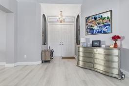 Tucked away on a quiet cul-de-sac, this expansive 6-bedroom, 5.5 bath estate boasts a 3-car garage, & offers over 4,200 square feet under air... designed for comfortable luxury living and effortless entertaining. Step through impressive double entry doors into a dramatic 14x12 grand foyer with 30-foot ceilings that immediately set the tone. Abundant natural light and soaring ceilings create a bright, open yet private feel throughout. The spacious primary primary suite is a true retreat, complete with a 13x10 Juliette balcony, a 16x11 spa-like bath, and an oversized 13x13 walk-in closet. Steps away from the resort style clubhouse & amenities, and all Tradition has to offer. Flexible opportunity- lease to own or purchase option, also available.