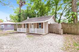 Nestled beneath mature trees in Tampa, this 4-bedroom, 3-bathroom home offers 1,216 square feet of thoughtfully arranged living space paired with inviting outdoor areas. The charming front porch and white picket fence create a welcoming first impression, while the spacious front yard and surrounding greenery add a sense of privacy and relaxed Florida living.