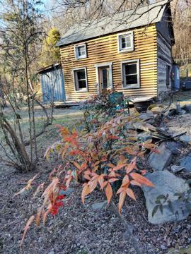 Chilly Hollow cabin has been lovingly restored with original hardwood floors and rustic beams/logs.