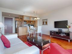Welcome to your Montreal executive retreat! This exclusive 2-bedroom and 2-bath apartment offers a seamless blend of impeccable style and ultimate comfort. Wake up refreshed in the spacious bedrooms, where natural light floods in, offering breathtaking views of the iconic Lachine Canal from the private balcony. Step into elegance with hardwood floors and designer furniture that define luxury living. The inviting living space provides the perfect ambience for relaxation and entertainment.