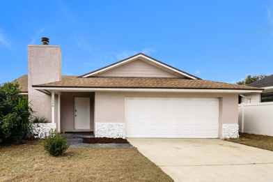 With its charming stucco exterior and renovated interior, this Winter Springs rental home on Andes Drive is sure to tempt you. It has three bedrooms and two bathrooms. There is a large two-car garage and a fenced-in yard. When you step inside, the first thing that you?re likely to see is the gorgeous stone fireplace in the living room. This section of the house features white tile floors and a ceiling fan for energy efficiency. The dining room comes with vaulted ceilings that offer an expansive feel. This space has sliding glass doors that will take you to the backyard. Inside the kitchen, there are stainless steel appliances that exude modernity. The kitchen also has white cabinets and white countertops. Come see this home today.
