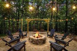 The chef’s kitchen is fully stocked with high-end appliances, a large refrigerator, ample cabinetry, a large island with high seating, and a Keurig and drip coffee maker. Enjoy the movie theater/game room with 10 reclining chairs, arcade games, a projector, and a pool table. The living room features a smart TV, an indoor fireplace, leathered sofa and seating, a high-vaulted ceiling, expansive windows, and an open floor concept directing to the kitchen and dining area. Outdoor amenities include a spacious deck with panoramic views, a hot tub, a fire pit, an outdoor patio/dining area, a BBQ grill, and outdoor chairs and lounge seating.