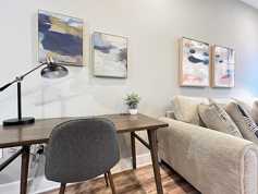 This apartment features modern finishes, spacious layouts, and unbeatable access to everything Tampa Bay has to offer. Enjoy 10ft ceilings, in-suite laundry, a full suite of on-site amenities, dinnerware, linens, entertainment, all utilities, a full-size fitness center, a stylish resident lounge and co-working areas, live cable TV, streaming apps, a large resort-style saltwater swimming pool, a Jacuzzi, a cold plunge and a dry sauna. The apartment also has a full washer and dryer.