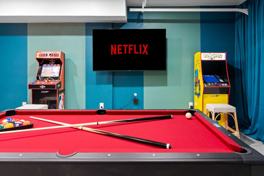 This home is equipped with a sportcourt for basketball and pickleball, a private pool, a hot tub, a firepit, a movie theater, and a game room with foosball, shuffleboard, a pool table, board games, and arcade games. Enjoy outdoor activities with pool basketball, putt putt, corn hole, giant Jenga, and Connect 4. The fully stocked chef’s kitchen features high-end stainless appliances, ample cabinetry, a large island with high seating, and a coffee maker for both drip and Keurig coffee. The living room includes a 65” smart TV, a large leather sofa, plush seating, and an indoor fireplace.