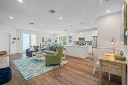 This open concept home features exquisite wooden floors throughout, creating a warm and inviting ambiance. The kitchen is fully equipped with cooking-ware suitable for simple, everyday, light meal preparation. Enjoy new furnishings, household supplies, a washer/dryer, free Wi-Fi, free parking, and beach accessories including towels, chairs, and coolers. Relax in the comfortable seating area with a large TV or unwind on the enclosed patio while watching TV.