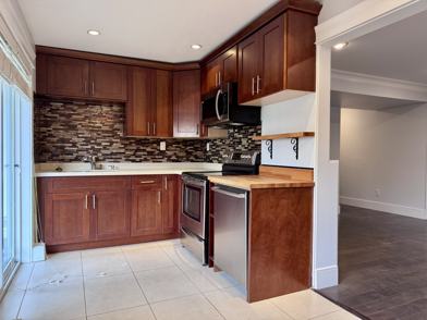 - Full kitchen with stove, fridge, dishwasher and microwave