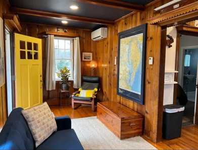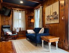 Wright’s Cottage offers a full kitchen. The back sun room contains the washer and dryer. There is an outdoor wood-stove and a propane grill for your use. The yard in the back of the cottage is fully fenced so your furry friend can freely play.
