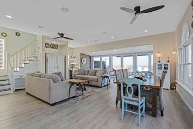 Feel at home in Queen Vic, a 5-bedroom, 3.5-bath Soundfront home with direct views of the Long Island Sound. The home sleeps up to 10 and features an open main living level with a large kitchen, dining area, and lounge facing the water.