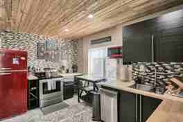 It comfortably sleeps your entire group with two King beds and two Twin Bunk Beds. Enjoy a full kitchen, a comfortable living room, and HD Roku TVs in every room! Step outside to the shared rooftop patio for city views and fresh air.