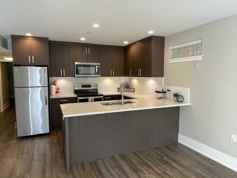 The suite includes two bedrooms plus a den, a fully equipped kitchen, in-floor heating, a full bathroom, and in-suite laundry for your convenience. Free street parking is available.