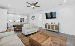 This home is designed for effortless beach living with room for everyone. The open-concept living and dining area is bright and welcoming, ideal for gatherings or quiet downtime. The fully equipped kitchen features modern appliances and a breakfast bar, perfect for casual meals or entertaining. Additional amenities include a queen sleeper sofa in the living area, a washer/dryer, and high-speed Wi-Fi. Step outside to the private pool and outdoor seating, complete with a gas grill for evening cookouts.
