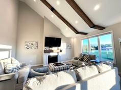 Enjoy a 65" Smart TV, a large balcony with patio seating, high-speed Wi-Fi, and a fully equipped kitchen. The family room seats 9 comfortably and features a cozy fireplace. The house is fully furnished with new linens and modern decor. A washer and dryer with supplies are available for your convenience. Bedroom 1 has a king-size bed and a private TV. Bedrooms 2 and 3 have queen beds, closets, and dressing tables.