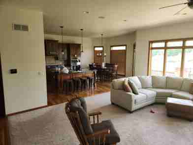 The open concept kitchen and living room features lots of windows, a rear airing porch, surround sound, gas fireplace and more. The kitchen features cherry wood cabinets, granite countertops, Bosch dishwasher, walk in pantry and the list goes on and on.