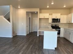 Kitchen with a large quartz island, pantry, and gas range. Laminate flooring throughout main areas. All bedrooms are upstairs with one loft. Master bedroom with walking closet. Hi-efficiency furnace, hybrid heat pump water heater. All fenced backyard.