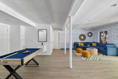 This modern home features upscale outdoor living with a private pool, hot tub, fire pit, and BBQ grill. Spacious, airy indoor gathering spaces boast refined architectural details and comfy furnishings. The gourmet kitchen is fully stocked with everything you need and more, featuring state-of-the-art stainless steel appliances and gorgeous granite countertops. Amenities include lake access, a dedicated workspace, an in-unit washer and dryer, a pool table, a TV, AC, heating, an indoor fireplace, high-speed Wi-Fi, and an outdoor patio.