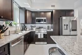 This immaculate residence features expansive 9-foot ceilings, two outdoor balconies, and a plethora of high-end amenities, including state-of-the-art appliances, Nest thermostats, exquisite granite countertops, elegant cabinetry, and luxurious flooring throughout. The king-size master suite includes an en suite bathroom, a convenient desk space, and panoramic vistas. The second and third bedrooms feature queen beds and en suite bathrooms. Prepare gourmet meals in the expansive, fully equipped kitchen adorned with top-of-the-line appliances and sleek finishes, then gather around the spacious dining room table. After dinner, unwind in the inviting living room, equipped with a 65-inch TV and ample seating. Soundproof construction ensures a peaceful retreat despite the proximity to the airport.