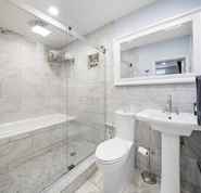 This unit is equipped with a walk-in shower with tub. The kitchen comes fully equipped, including knives, a coffee maker, baking sheets, pots, pans, and cups. A Roku TV is available in the living room and bedroom. The apartment comes with a private driveway.