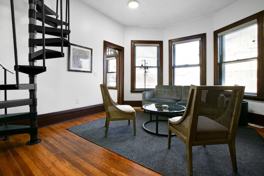 Set in a beautifully restored Victorian home, this apartment combines timeless character with modern amenities. The living room features a 50-inch Smart TV, and the fully equipped modern kitchen includes high-end appliances and a coffee bar. The private bathroom features a walk-in shower.