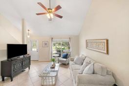 Discover an incredible opportunity south of 98--just 1.5 miles from the beach. From this home, you can walk or bike to Butler Elementary and the sugar-white sands of 30A via a scenic nature trail that winds through the neighborhood. This beautiful townhome with a fenced-in backyard places you right where you want to be: minutes from the beaches, restaurants, schools, shopping, and more. Located in the sought-after Escada community and positioned across from the lake, this property offers a blend of comfort, convenience, and coastal living. Residents also enjoy access to a community pool, an ideal spot to relax after a day in the sun or connect with neighbors. Inside, the home features an inviting open-concept layout highlighted by vaulted ceilings, large windows, and abundant natural light. The kitchen includes a breakfast bar, stainless-steel appliances, and generous storage, perfect for everyday living or entertaining. The entire home is carpet-free, with tile flooring on the first floor and durable LVP throughout the upstairs level, bedrooms, and stairway for easy maintenance. A first-floor guest bedroom offers flexibility, featuring two closets and convenient access to a full bathroom. Upstairs, the primary suite provides a walk-in closet and an en suite bathroom, offering a quiet and comfortable retreat.