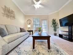 This apartment includes dinnerware, linens, entertainment, all utilities needed, a Keurig coffee maker, a full-size fitness center, a clubhouse with weekly community events, live cable TV, streaming apps, and a full washer and dryer in unit. Enjoy access to two large resort-style swimming pools.