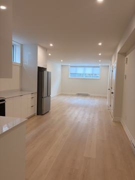 Available immediately, this is a brand new construction 1,000 sqft 2 bed + den + 1 bath basement unit in a modern contemporary 3-plex.