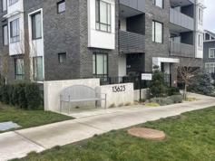 Kings Landing II by Dawson & Sawyer. Walking to Bear Creek, transit just in front of building, close to Costco, Superstore, Newton Pool, shopping & restaurants. This garden level 1 bed + den junior bdrm plan comes with 1 parking, 1 storage locker, an L-shaped kitchen, coat closet and storage off the entry way, spacious master bedroom with a walk-through closet to your cheater ensuite which includes a soaker tub. 2 access to your private patio from your living area and bedroom. 11'6 Ft ceiling and developer upgrade with garburator & laminate flooring in flex. Recent Upgrades include sliding door in den, Organizer in closet