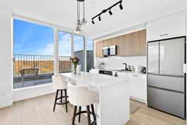 Brand new corner penthouse suite with 2 bedroom and 2 bathrooms. Features include: wrap-around terrace, West facing views, parking with EV / Tesla charger, locker, upgraded appliances, stunning finishes, tall ceilings, floor to ceiling windows, and motorized window blinds. Incredible building finishes. Amenities include: concierge, games room, gym, out door patio with BBQs, party room, recreation room, pet washing area, library, yoga room, art studio, snack shack, and indoor child play area. Bell high speed internet included in lease. Gas, electricity, water are not included.