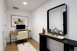 This spacious 1-bedroom, 1-bath residence offers 856 sq. ft. of thoughtfully designed living space, complete with a versatile home office-ideal for remote work, a reading nook, or creative studio. The open-concept layout features a bright and comfortable living area, seamlessly connected to a modern kitchen with space for dining. The generously sized bedroom offers a quiet retreat, while the full bathroom is finished with clean, contemporary touches. A separate laundry closet with an in-unit washer and dryer adds everyday convenience, and the smart floorplan maximizes both function and flow. Residents enjoy keyless entry, a beautifully furnished lobby with Amazon package room, resident lounge, fitness center, and business center-all included in the rent. Indoor garage parking with EV charging stations, additional storage options, on-site resident super, and pet-friendly policies (see Documents for details) complete the lifestyle. Perfectly located near the train, village shops, parks, and major highways, this brand-new building offers modern living in a prime location. Note: Interior photos may not reflect the exact unit available.