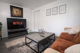 This apartment has everything you need for a seamless stay. Unwind in the cozy living space and enjoy your favorite shows on the Smart TV. The fully equipped kitchen includes cookware, essentials, and a Keurig coffee machine. For added convenience, there is an in-unit washer and dryer.