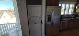 Enjoy a modern kitchen equipped with stainless steel appliances, including a dishwasher, along with ample cabinet space. The unit offers the convenience of in-unit laundry and comes with 2–3 off-street parking spaces.
