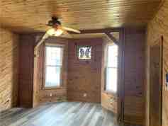 One Of A Kind Home With The Rustic Feel--Lots Of Natural Wood--Large Rooms Including Large Bathroom With Step Up Tub--Fresh Paint Throughout Home--Brand New Floors On First Floor--Rope Handrail--First Floor Bedroom & Brand New 1/2 Bath On Main Floor--Nice Sized Closets--Driveway With Additional Off St Parking--Fenced In Back Yard That Has Woods Behind It--Newer Furnace And Windows For Efficiency--Covered Front Porch--Full Walk Up Basement--Large Eat In Kitchen And More !!!!